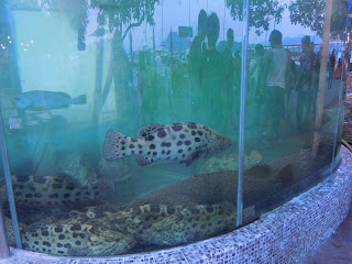 Today I went on a walking tour of the neighborhood offered by my apartment agency. They showed me the nearby "wet" market - so called because the vendors will pour water on the ground for cleaning. Lots of fresh fish, fruits and vegetables, roasting chickens, etc. I was also shown very practical things, such as where to get a haircut, electronic stores, the public library, banks, a nearby pharmacy and groceries. They will be providing me information on where to take a Chinese cooking class also.